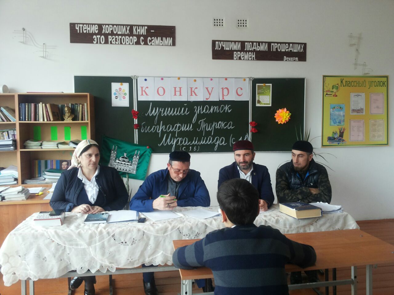 Педагог Духовно-нравственного воспитания Ю.Я Куразов совместно с классными руководителями в 5-11 классов провел конкурс среди учащихся, где заранее были выданы соответствующие вопросы и ответы на знание « О жизни и наследии Пророка Мухаммада». В ходе проведения конкурса были выявление лучшие знатоки « О жизни и наследии Пророка Мухаммада». Ими стали ученицы 6-го класса Хутиева Рябия, Аюбова Хеди и ученица из 9 класса Айсагурова Айна. Победители внутри школьного конкурса приняли участие на первом туре районом конкурсе.